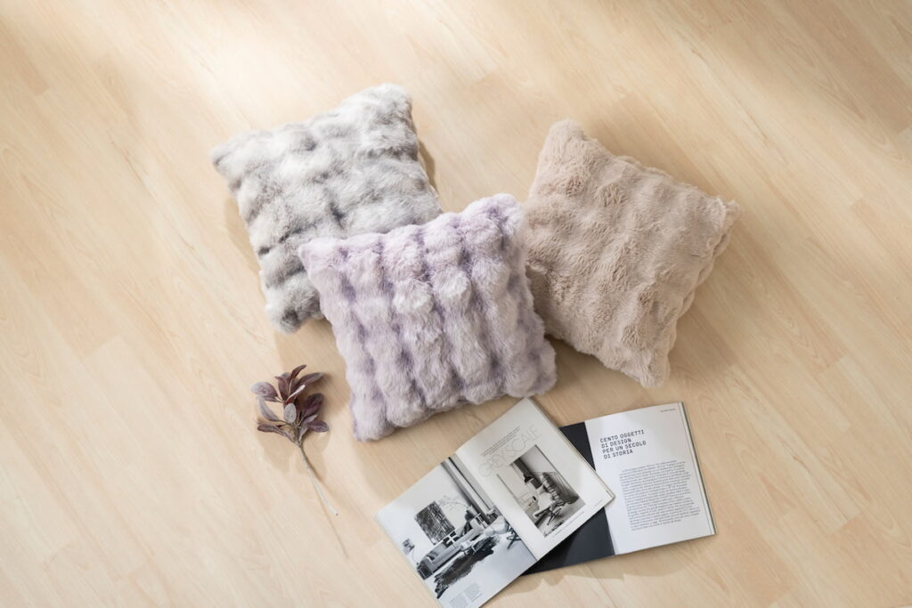 シンプルながら存在感のあるデザインは、ソファやベッド、床まわりなど、さまざまなシーンで活躍。ブランケットからクッションカバー、ラグやペットベッドまで、ラインナップも豊富だから、統一感のある冬のコーディネートが楽しめます。