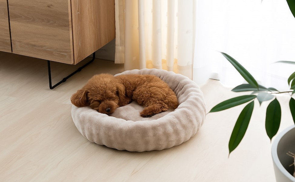 大切なペットにもあたたかな居場所を。ポコポコ素材でやさしく包み込むペットベッドは、見た目のかわいらしさと機能性を兼ね備えています。インテリアに馴染むデザインだから、お部屋に置いても自然。
