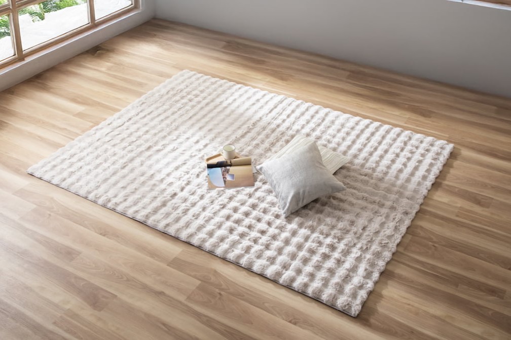 足元からぬくもりを届けるスペースラグ。ポコポコの独特な肌触りと厚みで、冬の冷たい床も快適に。ソファ前やベッドサイドなど、ちょっとしたスペースに敷くだけで冬支度が整います。
