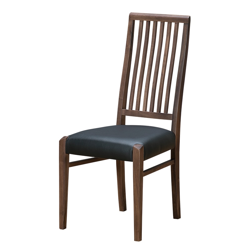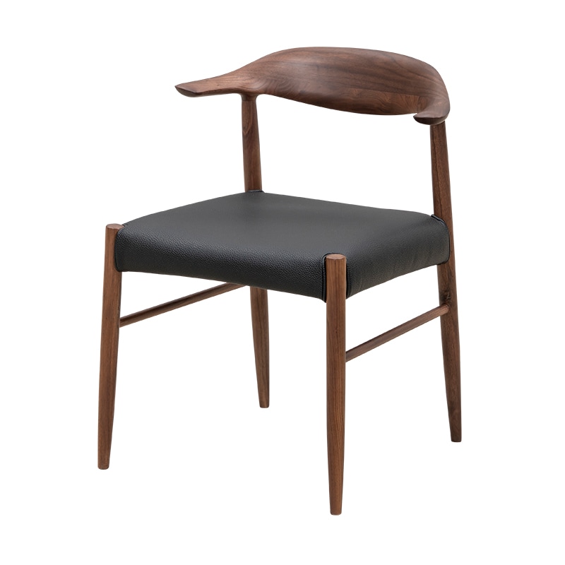 細身ながらも安定感のある木製の脚と、背もたれから座面にかけての美しいラインが特徴。座面と背もたれには、身体にフィットするよう計算されたクッションが施されており、長時間の使用でも疲れにくい快適な座り心地を実現しています。
