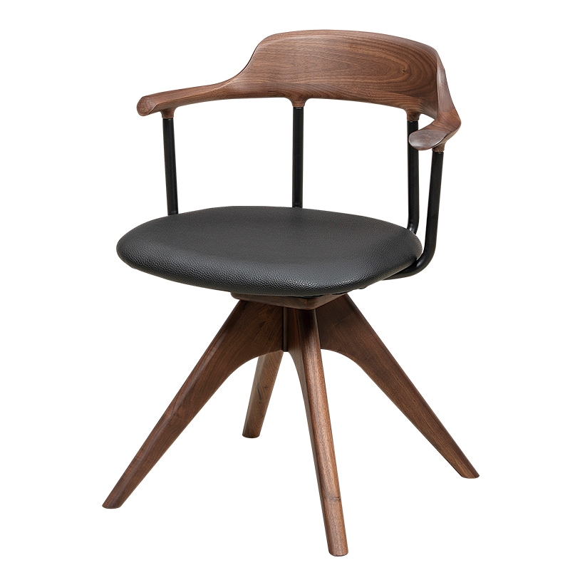 無駄を省いたスタイリッシュなフォルムは、様々なテイストのダイニングテーブルと合わせやすく、空間を選びません。座面は360度回転するため、着席時や離席時の動作が非常にスムーズ。
