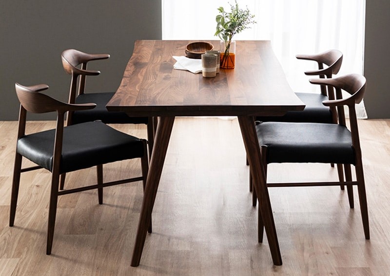 アーム付きチェアの場合は、アームの高さがテーブルの幕板にぶつからないかも確認してください。圧迫感のない、ゆとりのある空間作りを心がけましょう。