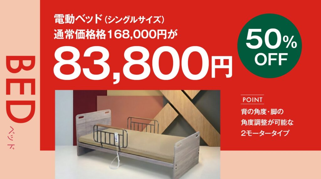 リラックスタイムの読書や、将来の介護用としても需要が高まっている電動ベッド。高機能なマットレス付きのシングルサイズが、驚きの10万円切りを実現しました。(非課税商品)