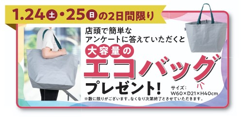【2日間限定】アンケート回答で「大容量エコバッグ」プレゼント